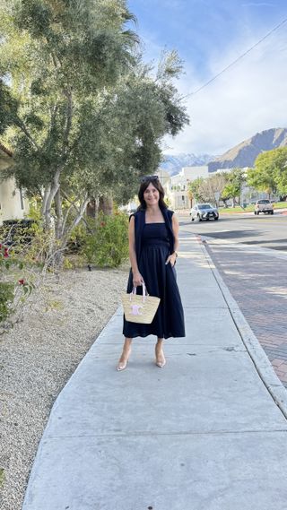 “If you opt for a classic midi-style linen dress like this one, your styling options are endless. Try tying a linen shirt over your shoulders or throwing on a denim jacket. For extra warmth, grab a lightweight cashmere sweater.” — Wright