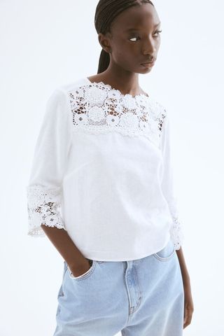 Broderie Anglaise Linen Blouse