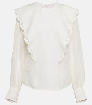Linen-Blend Broderie Anglaise Blouse