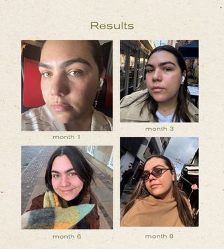 Over the course of six months—October to April—Hand and I worked together to transform my skin. It’s a technique she’s perfected called “Marry Me” skin, a nod to the several clients who got married or proposed mere weeks after sitting on her treatment table. The process included a customized routine made for my skin and a series of in-office facials and at-home self-guided treatments aimed at improving my texture and hyperpigmentation. Spoiler alert: While it was slow and steady progress, it worked.