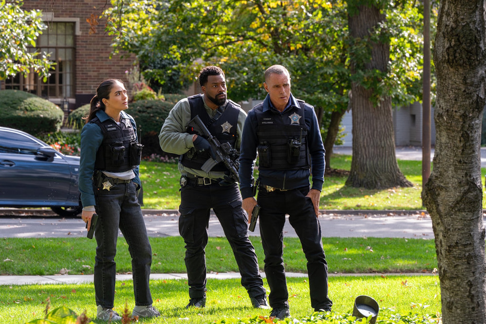 That news comes when Voight calls Burgess (Marina Squerciati) because it’s all hands on deck once Imani (Arienne Mandi) contacts him from the Bell house to report that the killer’s gone, as is his granddaughter Julie — who runs off when Imani tries to get her to help her get a man she finds beaten in the basement out of the house. When Voight tells Burgess to notify the rest of the team and for her and Ruzek to meet him there, she informs him that her husband had an emergency with his father, so he’s at the facility.